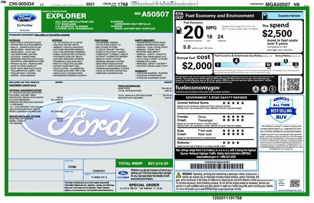 2021 Ford Explorer Platinum Platinum Carbonized Gray Metallic 3.0L EcoBoost V6 10-Speed Automatic 4WD