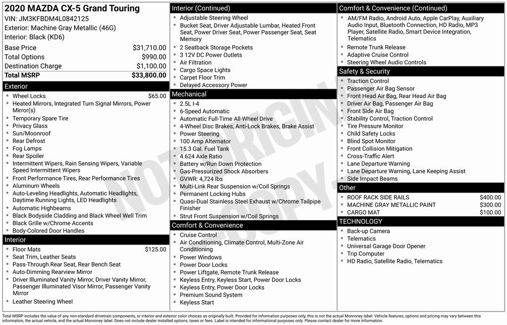 2020 Mazda CX-5 Grand Touring Grand Touring Machine Gray Metallic SKYACTIV® 2.5L 4-Cylinder DOHC 16V 6-Speed Automatic AWD